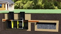 Четырех-камерная станция биологической очистки имеет горизонтальное исполнение для простого и незатратного монтажа при высоких УГВ (УГВ - уровень грунтовых вод). За счет горизонтального исполнения станция имеет минимальную монтажную глубину ( всего лишь 1300-1500 мм до дна котлована!) что делает ее лидером среди всех станций биологической очистки на рынке СНГ по удобству и простоте монтажа при высоком уровне грунтовых вод. Не требует якорения! Всплытие исключено!