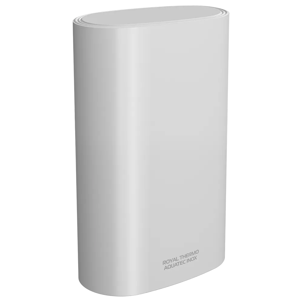 Модель Royal Thermo Aquatec INOX-F RTWX-F представляет собой 100-литровый бойлер косвенного нагрева с плоским корпусом. Конструкция включает внутренний бак и теплообменник, изготовленные из нержавеющей стали, легированной элементами, повышающими коррозионную стойкость. Оптимизированные габариты и конфигурация обеспечивают гибкость монтажа и минимизацию занимаемого пространства. В стандартную комплектацию входит медный электрический нагревательный элемент (ТЭН) мощностью 2 кВт с возможностью регулировки выходной температуры воды в диапазоне от 30°C до 75°C.