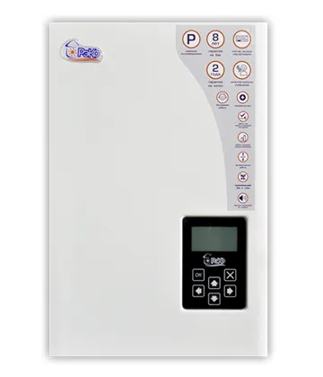 В котле РЭКО контроль, настройка котлом осуществляется с помощью цифрового дисплея, на русском языке.
