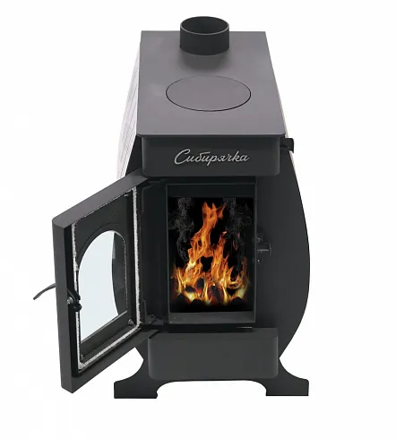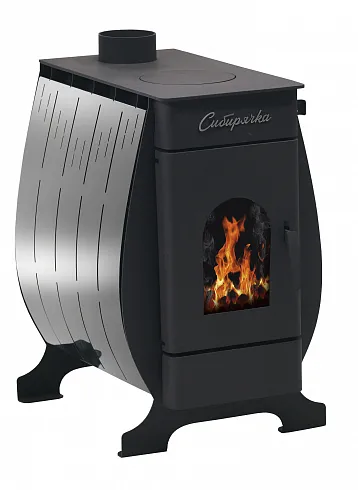 Воздухогрейная печь «Сибирячка» представляет собой отопительный прибор, предназначенный для обогрева помещений различного назначения объемом от 100 м3 до 200 м3. Отличительной особенностью данной печи является наличие в ее конструкции варочной плиты, предназначенной для приготовления пищи и нагрева воды. Стенки печи изготовлены из стали марки Ст.3 СП 5 толщиной 3 мм, а варочная плита – 6 мм, которая с обратной стороны имеет кольцо, необходимое для удержания металлического кружка. Неповторимая эстетика печи «Сибирячка» достигается за счет создания стильного дизайна, позволяющего дополнить любой загородный интерьер качественным отопительным прибором по более чем доступной цене. Основным источником топлива в данной печи являются дрова и прессованные древесные брикеты, позволяющие получать максимальное тепло при использовании данной печи для отопления, а высокоточный лазерный раскрой металла в совокупности с роботизированной сваркой ключевых узлов печи делает эту печь еще надежней и долговечней. Данная модификация оснащена кожухом из нержавеющей стали марки AISI 430, толщина которого составляет 0,8 мм.