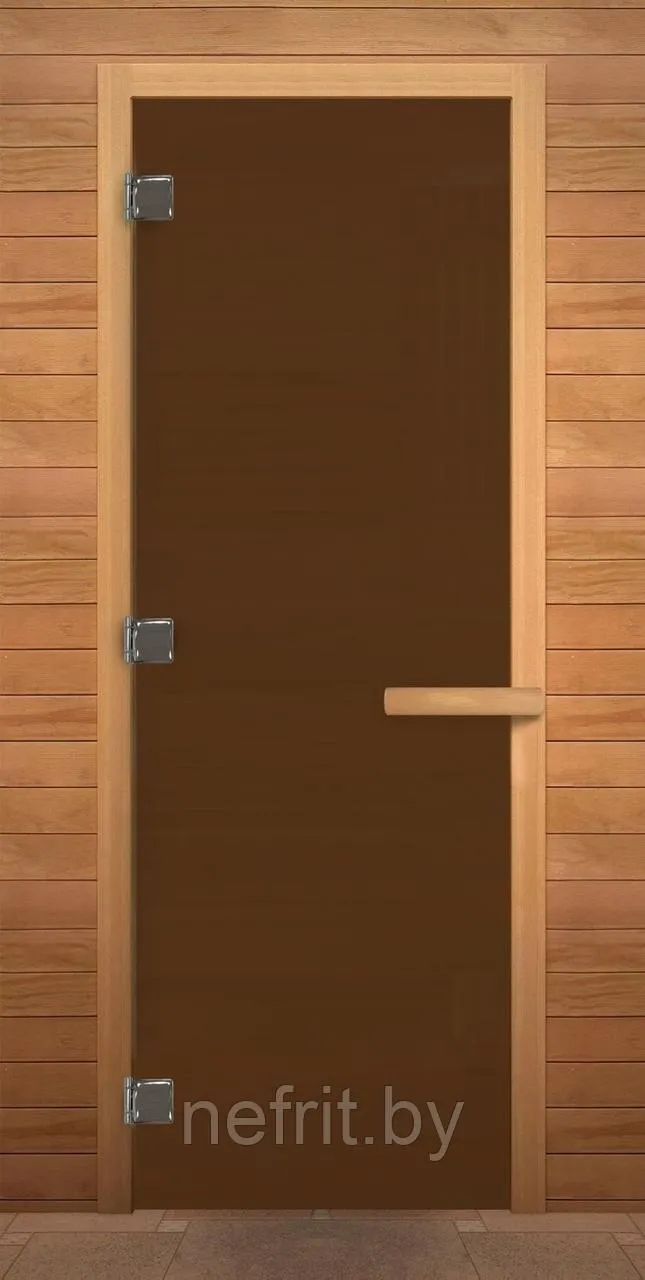 Дверь для бани стеклянная матовая бронза, 3 петли, 8мм