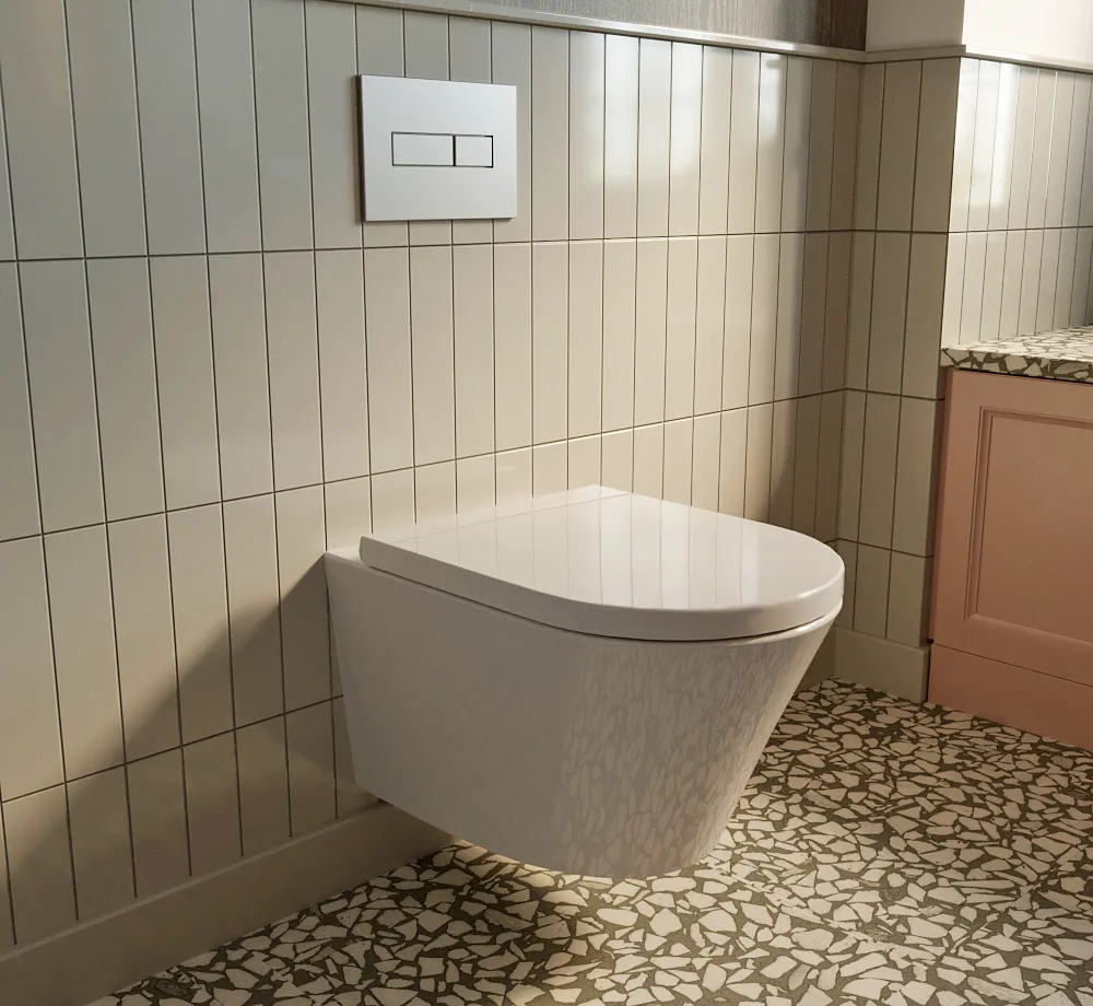 - 21010005 - Комплект 2 в 1 Lavinia Boho Biore Compacto Rimless (звукоизолирующая пластина для унитаза 38050010; подвесной унитаз Biore Compacto Rimless 330402CR; быстросъемное дюропластовое сиденье с медленно опускающейся крышкой и хромированными металлическими петлями (включено в артикул 330402CR)