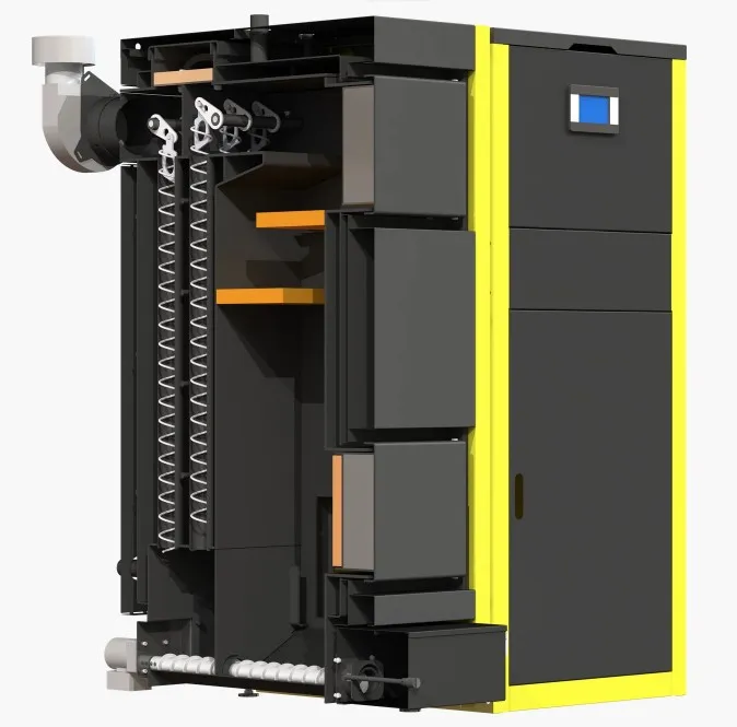 Агрегаты оснащаются шнековым механизмом подачи топлива, автоматической пеллетной горелкой, электронным контроллером температуры.