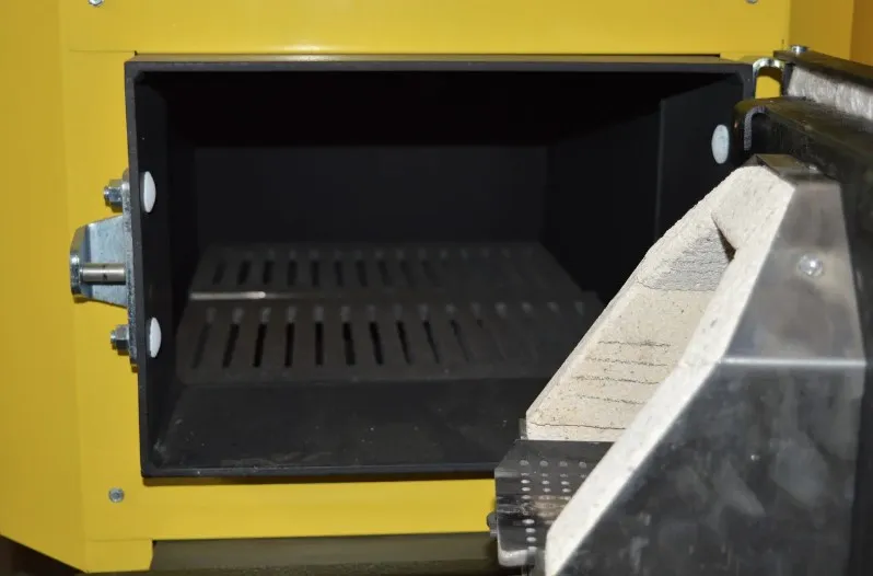 Горение гранул в топке происходит на подвижном колоснике из жаропрочной стали. Камера сгорания облицована огнеупорной керамикой.