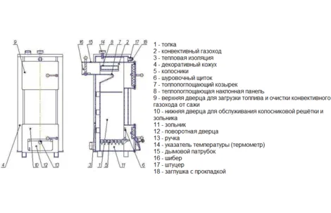 Агрегат изготавливается из листовой стали толщиной 3 мм. Имеет открытую камеру сгорания, то есть относятся к атмосферному типу, работающему на естественной тяге воздуха