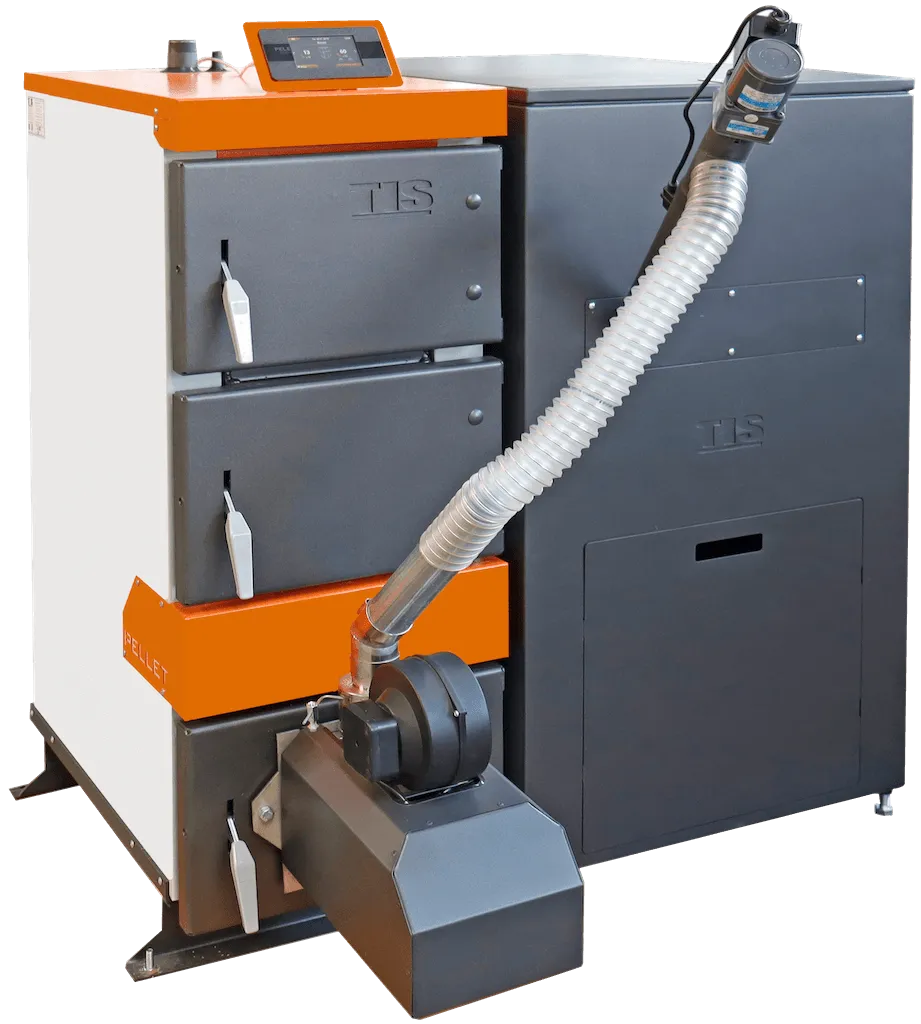 Котлы на твердом топливе изготавливаются из европейской стали S235JR. Горелка выполнена из нержавеющей стали, оснащается датчиком пламени.Серия котлов ТИС ПЕЛЛЕТ относится к 5 классу европейских экологических норм. Включают большой выбор конфигураций по номинальной мощности от 15 до 95 кВт. Это позволяет выбрать подходящий агрегат, как для отопления небольшого частного дома, так и целых торговых, офисных или производственных зданий
